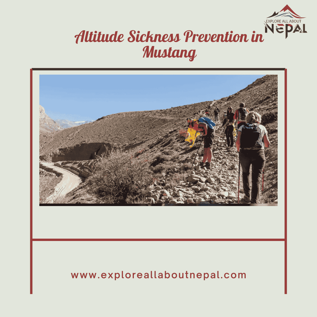 Altitude Sickness Prevention in Mustang refers to the measures and precautions taken by trekkers to avoid the harmful effects of altitude sickness while traveling through the Mustang region of Nepal. Mustang, being a high-altitude area with elevations ranging from 3,000 meters (9,842 feet) to over 6,000 meters (19,685 feet), poses a significant risk for tourists who ascend too quickly without proper acclimatization.