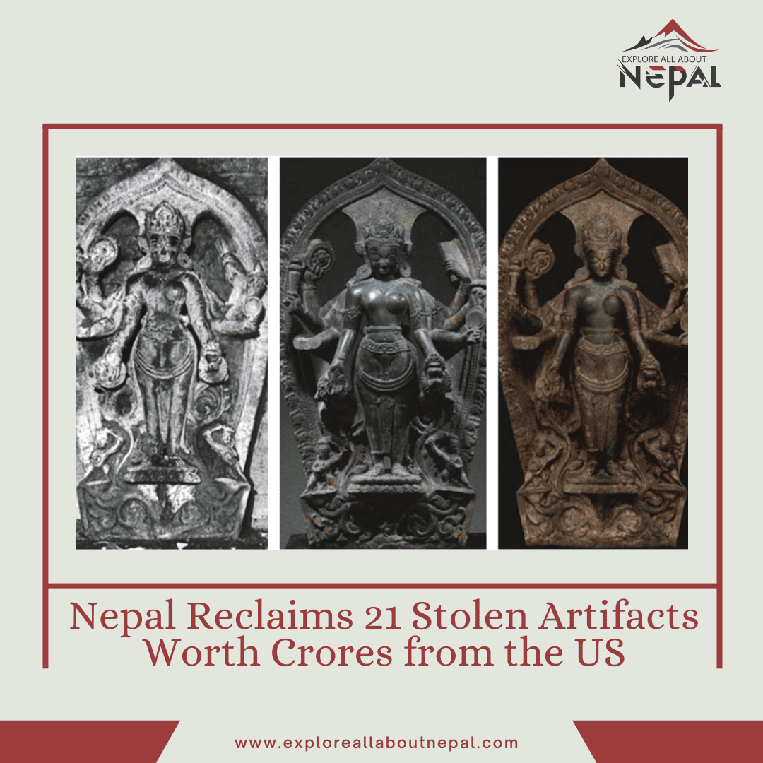 Nepal Reclaims 21 Stolen Artifacts refers to Nepal successfully recovering 21 cultural and historical artifacts that were illegally taken from the country and later found in the United States. These artifacts, which include ancient statues, religious relics, and sculptures, hold immense cultural, religious, and historical significance. Their return is part of Nepal’s ongoing efforts to reclaim stolen heritage and prevent the illegal trafficking of its cultural assets.
